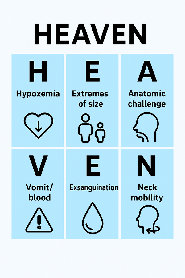 Die HEAVEN-Kriterien sind ein etabliertes Werkzeug zur Einschätzung des schwierigen Atemwegs im präklinischen Atemwegsmanagement. Sie helfen Einsatzteams, potenzielle Risiken bei der Intubation systematisch zu erkennen und das weitere Vorgehen optimal abzustimmen[1].